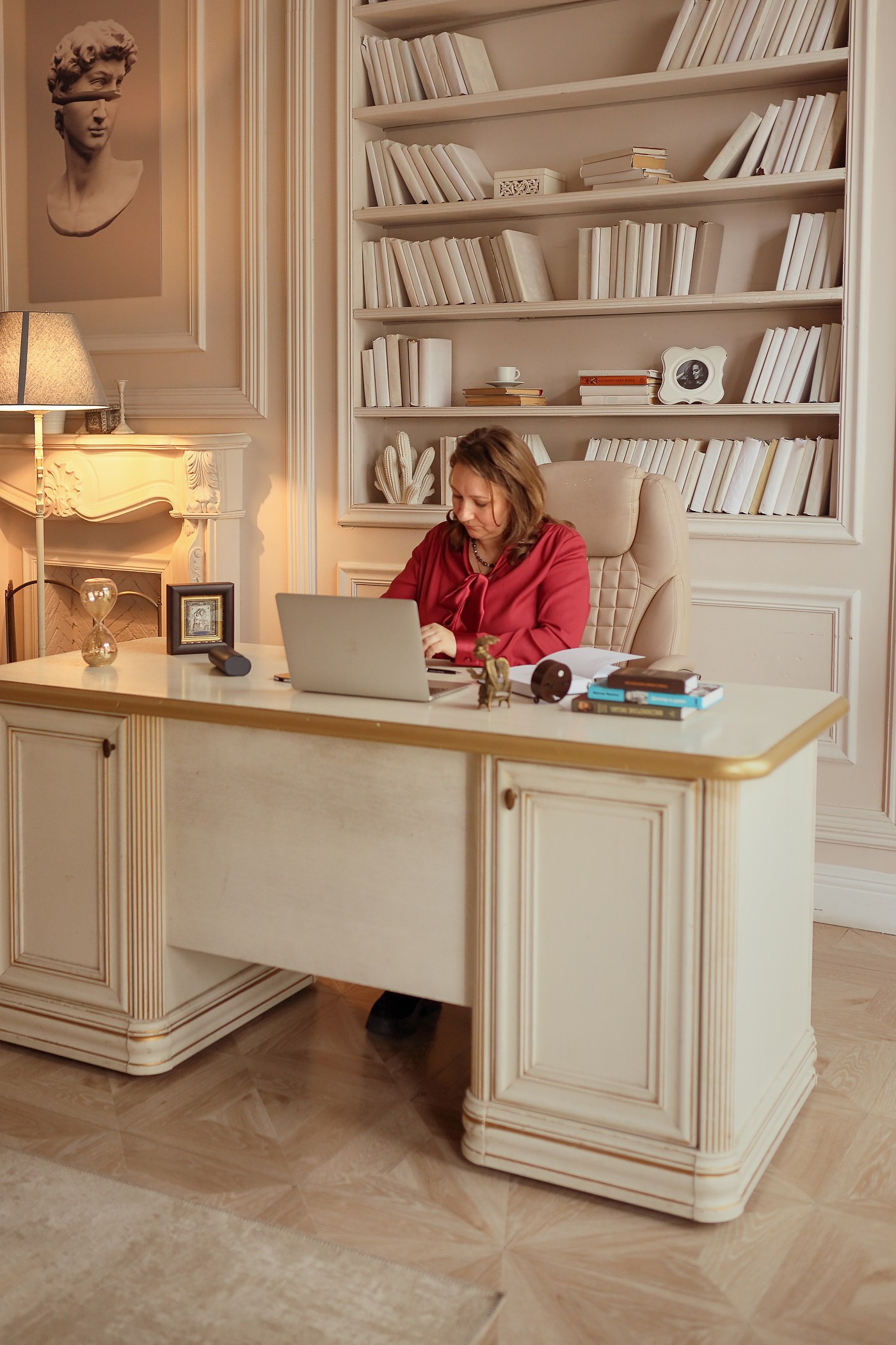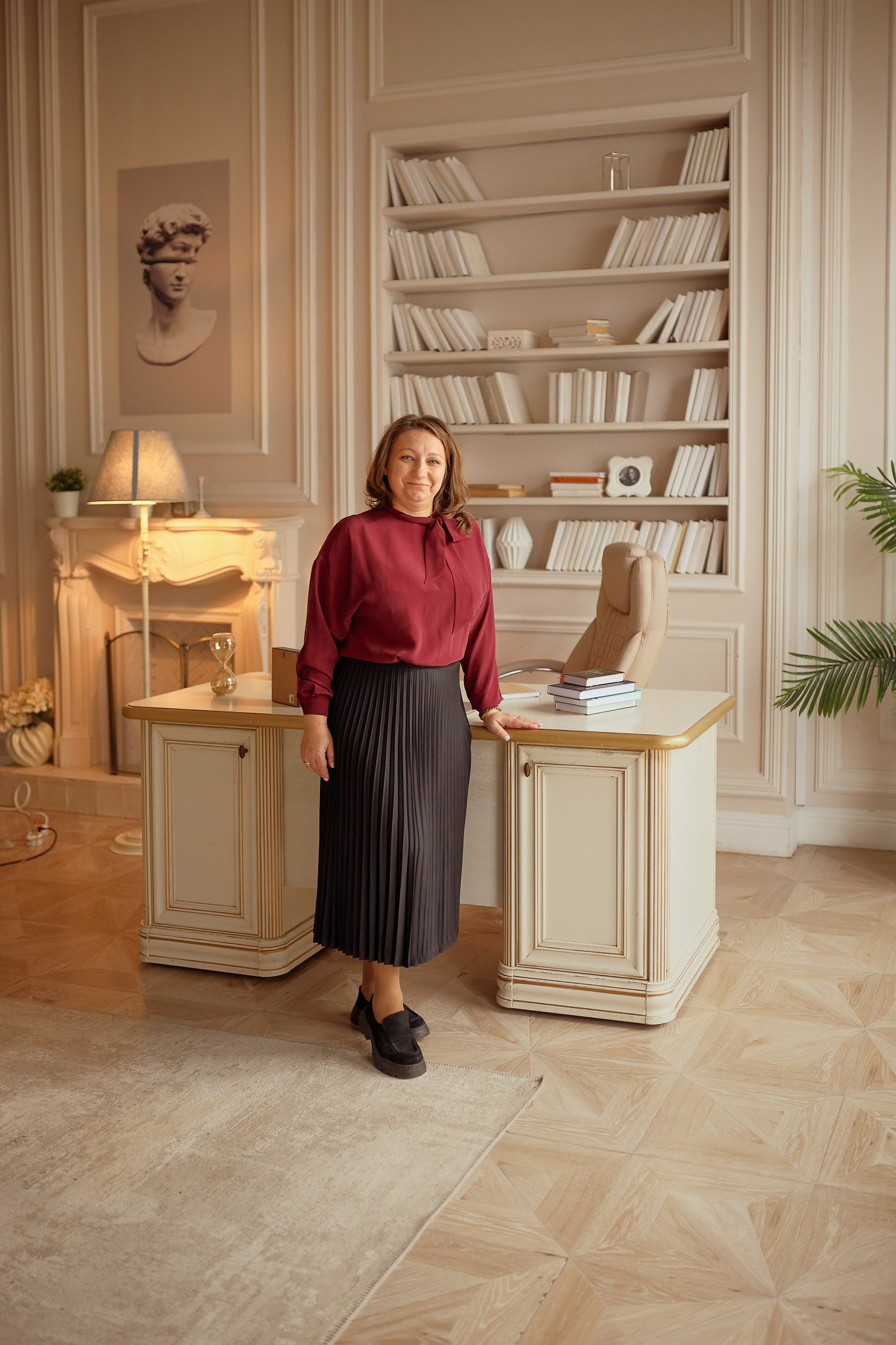 - Подбор локаций — студии с интерьерами «женского кабинета», тёплые, с книжными шкафами и креслами с высокой спинкой